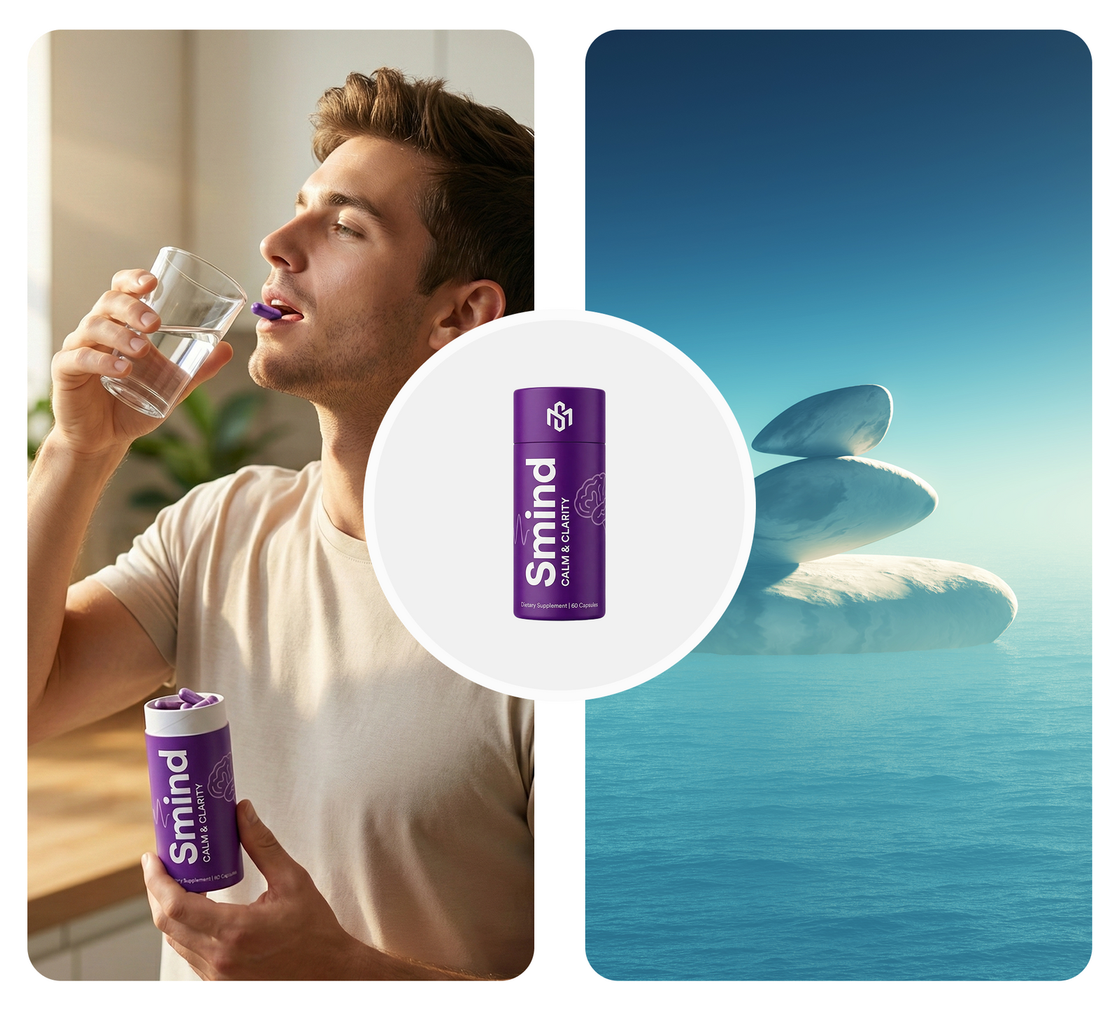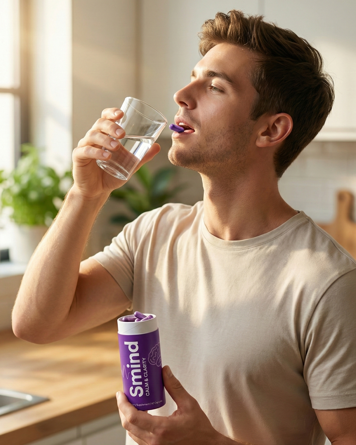 Step 3: Reset (Evening) Take 2 Calm & Clarity Capsules (Purple) 45 minutes before bed. This lowers cortisol levels and quiets racing thoughts, preparing your brain for deep, restorative sleep.